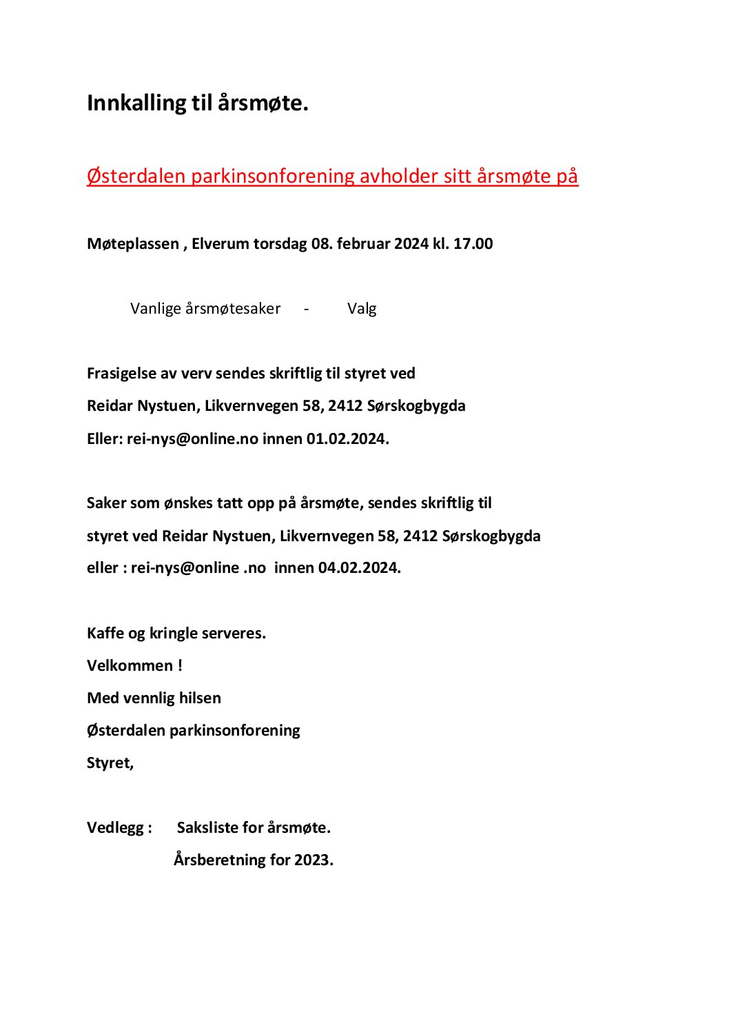 Innkalling til årsmøte.