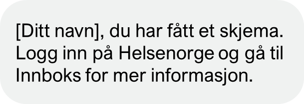 Meldingen er ikke spam, og informerer om at du har mottatt et skjema og det oppfordres til å logge seg inn på Helsenorge.